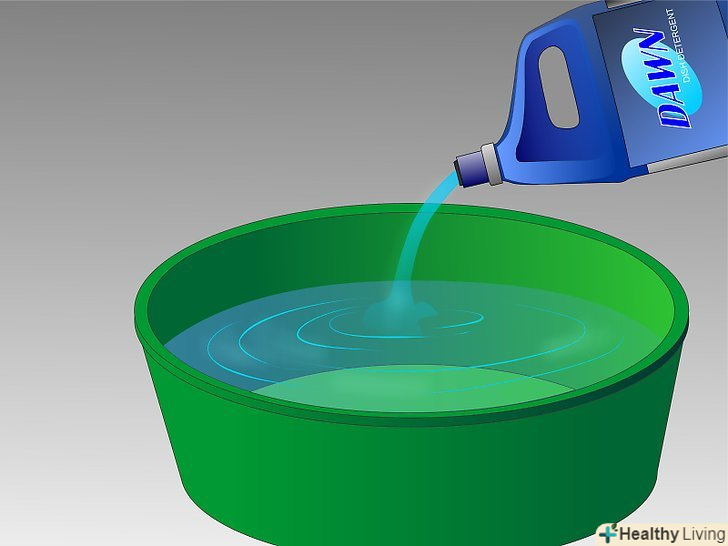 Наповніть ванну або басейн водою і додайте 1 ст.л. засобу для миття посуду. Перемішайте рукою, одягнувши попередньо гумову рукавичку.