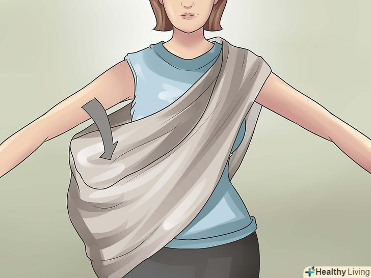 Підведіть слінг під руку.Візьміть кінець слінгу без кільця, який звисає зі спини, і виведіть його наперед під рукою. Знову розгорніть слінг.- На цьому етапі, переконайтеся, що слінг не перекручений на спині.