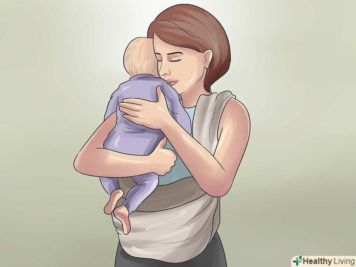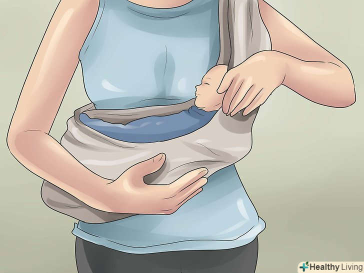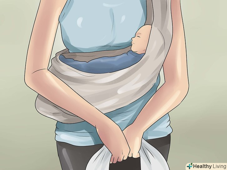 Зафіксуйте малюка.потягніть за тканину навколо талії і розтягніть її до шиї дитини, утримуючи тканину під немовлям.