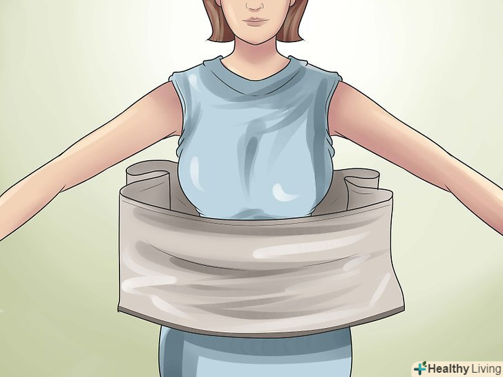 Оберніть слінг навколо живота.візьміть складену тканину і оберніть її навколо живота. Перевірте розташування-середина тканини повинна охоплювати живіт.