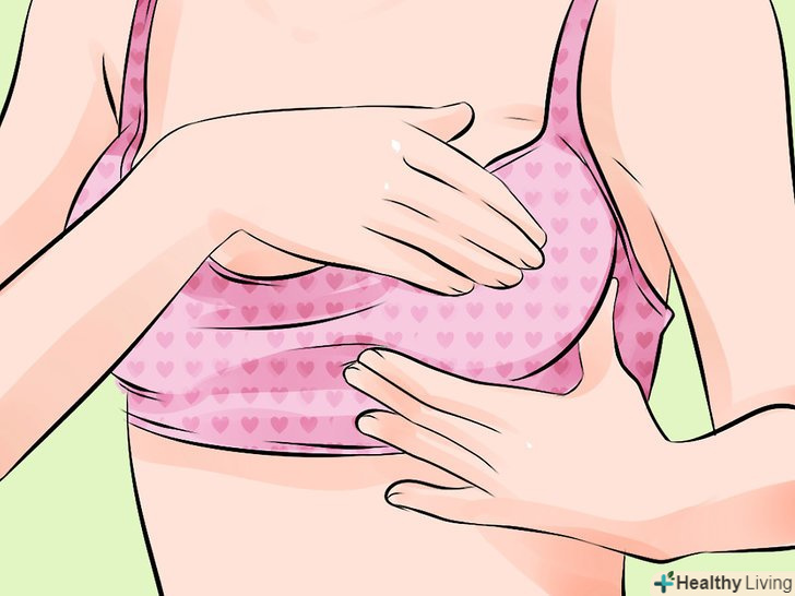 Покладіть руку на молочні залози.пальці повинні знаходитися вище або нижче сосків. Так як показано тут:- Ваш великий палець повинен бути вище соска приблизно на 3 см.