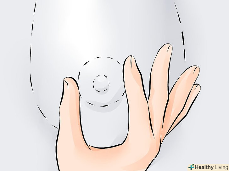 Натисніть на грудну клітку.натискання має бути ніжним і в той же час твердим, але стежте, щоб не було відчуття сильного здавлювання грудей. Ні в якому разі не допускайте подряпин і сильного стиснення шкіри навколо ореол сосків, так як це зробить процес важче. Натисніть великим пальцем і вказівним на молочну залозу. Тут ще дещо корисне:- Пам'ятайте натискати потрібно як би всередину, і пальцями робити обертові рухи, а не ковзаючі.