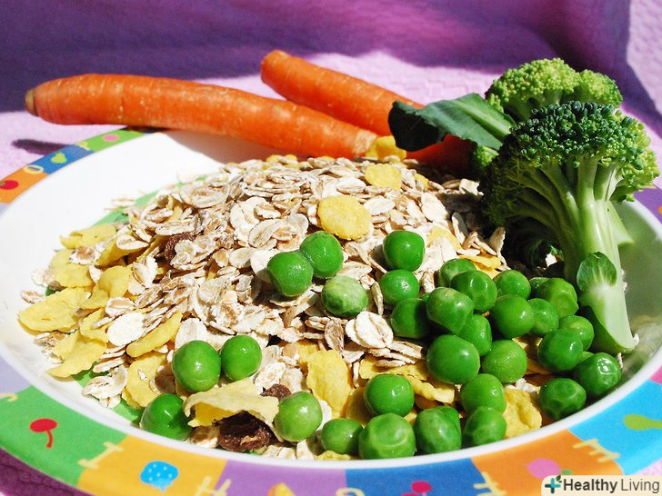 Почніть з овочів.коли ви почнете годувати вашу дитину твердою їжею, то спершу давайте йому такі овочі, як горох і спаржу, замість фруктів. Незважаючи на те, що починати годувати дитину фруктами – це звичайне явище (так як вони солодкі на смак і привабливі), якщо малюк привчиться їсти овочі, то звикне до менш солодкої їжі. Не давайте вашій дитині постійно їсти мюслі з фруктами, намагайтеся час від часу готувати йому кашу з горошком, вівсянку і солодку картоплю або рис з морквою.