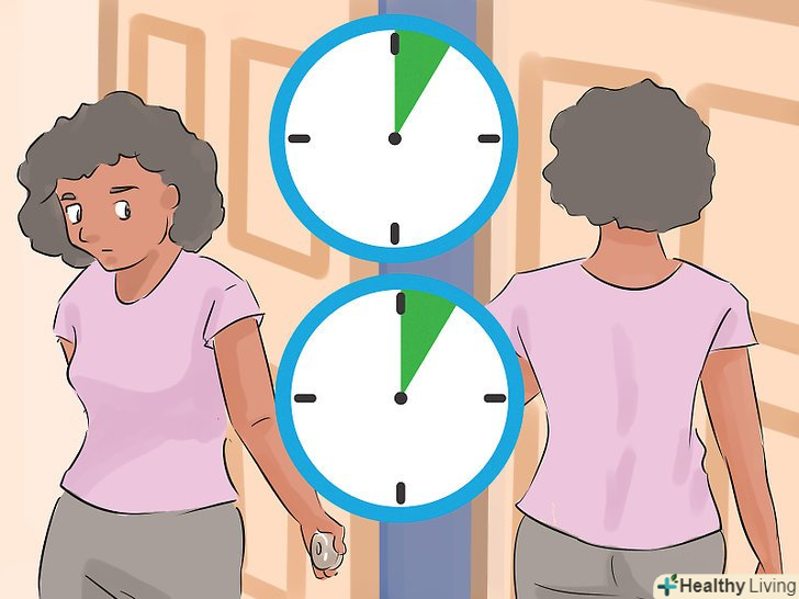 Вийдіть на 10 хвилин і знову поверніться, щоб заспокоїти малюка.спробуйте заспокоїти дитину і знову вийдіть з кімнати, але повертайтеся не раніше, ніж через 10 хвилин. Дитина або проплаче весь цей час, або втомиться і засне раніше. У будь-якому випадку слід почекати 10 хвилин і знову заспокоїти дитину, як і раніше, якщо буде потрібно.[16]- Багатьом батькам важко слухати, як плаче їхня дитина, але це обов'язкова частина процесу.