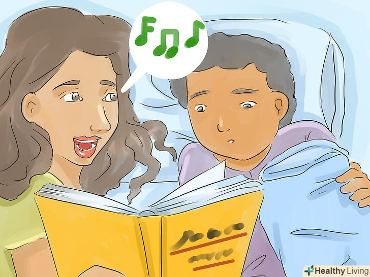 Почитайте оповідь на ніч і заспівайте колискову.ще один спосіб заспокоїти дитину перед сном-почитати казку або заспівати колискову, тримаючи його на руках. Перетворіть ці дії в частину вечірнього ритуалу. Згодом дитина почне асоціювати їх зі сном.[5]- Наприклад, можна читати малюкові одну і ту ж казку і співати одну і ту ж пісеньку щовечора, щоб йому було простіше заснути.