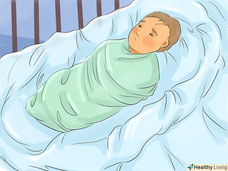 СпробуйтеСповивати дитину, щоб він відчував себе в безпеці.покладіть розгорнуте ковдру на рівну стійку поверхню (наприклад, на ліжко) і підверніть один край. Покладіть дитину на ковдру так, щоб його голова виявилася на підвернутому краї. Оберніть тіло дитини одним вільним краєм так, щоб рука виявилася закритою. Потім накрийте ноги малюка нижнім краєм. Після цього оберніть дитини залишилися краєм і подоткніте його знизу.[10]- Можна купити спеціальні спальні мішки для сповивання, щоб дитині було тепло і спокійно.