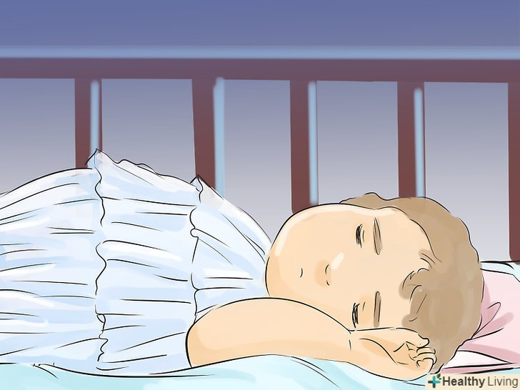 Покладіть дитину в ліжечко, якщо він вже сонний, але ще не спить.можливо, вам дуже хочеться обіймати дитину і заколисувати його щовечора, однак це може привести до проблем в більш старшому віці. Дитині буде складно засипати без заколисувань, а якщо він прокинеться вночі, він не зможе знову заснути сам. Дочекайтеся моменту, коли дитина стане сонним, і перекладіть його в ліжечко.[6]- Кладіть дитину в ліжечко на спину. Це дозволяє знизити ризик синдрому раптової дитячої смерті. Коли дитина навчиться перевертатися, він зможе сам змінювати своє положення так, як йому зручно.