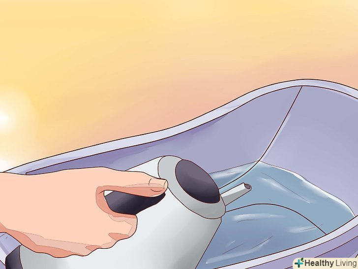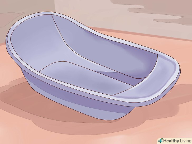 Встановіть ванночку для купання.більшість дитячих ванночок розроблені таким чином, щоб підтримувати голову і шию немовляти. У ванночку можна опустити дитячу гірку, яка, як правило, забезпечена тканиною і піднята таким чином, щоб немовля не занурювався в воду цілком. Помістіть ванночку з гіркою в ванну або на підлогу ванної кімнати, в залежності від інструкції виробника.- Якщо у вас немає ні ванночки, ні гірки, скористайтеся чистою раковиною умивальника, можна на кухні. Переконайтеся, що змішувач не зачіпає головки немовляти.