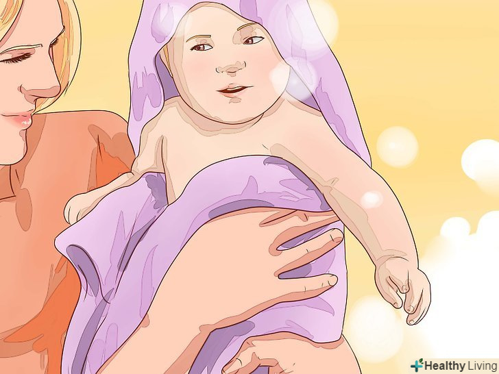 Витріть немовля насухо.промокніть спочатку тіло, потім переконайтеся, що сухо за вухами і у всіх складочках, щоб там не залишилося зайвої вологи. Постарайтеся максимально висушити волосся.- Пам'ятайте, що чисте волосся дитини сохнуть дуже швидко. Не використовуйте фен, в цьому немає необхідності, і це небезпечно.