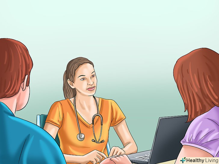 Порадьте медичне обстеження.переконайтеся, що у вашого чоловіка або дружини перевищена маса тіла, перш ніж робити висновки. Запитайте його або її, коли він або вона в останній раз були у лікаря. Якщо цього не було, і йому або їй не робили аналіз крові в минулому році, Запропонуйте дружині або чоловікові записатися на прийом до лікаря.- Іноді зайва вага залежить від хімічного або гормонального дисбалансу. Після народження дитини, у деяких жінок виникають проблеми зі щитовидною залозою, пояснює набір ваги. В цьому випадку необхідно пити ліки.