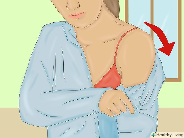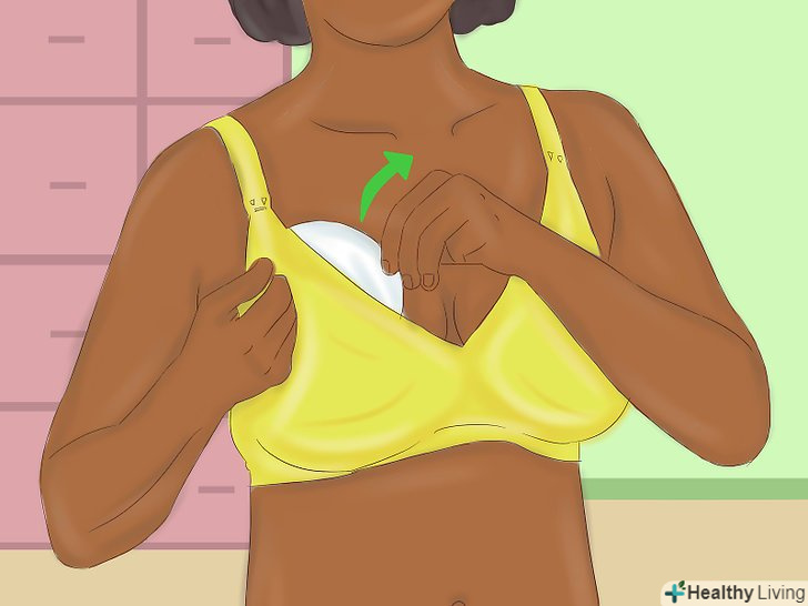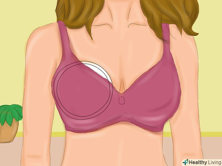 Виправте Вкладиші.перш ніж надягати блузку, переконайтеся в тому, що прокладки повністю закривають соски. В іншому випадку просто поправте їх. Це допоможе уникнути подразнення шкіри, до того ж запобіжить протікання і намокання одягу.[6]- Абсолютно нормально, якщо прокладки видно крізь одяг. Можна купити тонкі Вкладиші, щоб їх не було видно через бюстгальтер або одяг, якщо кількість виділяється молока невелика.[7]