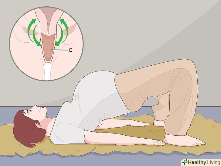 Зміцніть м'язи тазового дна за допомогою вправ Кегеля.привівши м'язи тазового дна в форму, ви зможете легше народити і відновитися швидше. Це також допомагає жінкам впоратися з нетриманням сечі після пологів. Робіть ці вправи тричі на день.[20]- Короткі стискання. Ці вправи підвищують вашу силу. Ляжте на спину або сядьте, розставивши ноги на ширині плечей. Стисніть м'язи навколо ануса, як ніби намагаєтеся не випустити гази. У той же час, стискайте м'язи навколо піхви і сечового міхура, як би зупиняючи сечовий потік. Виконуйте вправу, не стискаючи разом сідниць. Ваші сідниці повинні весь час бути розслабленими. Утримуйте стиснення одну-дві секунди. Повторюйте, поки не втомитеся.