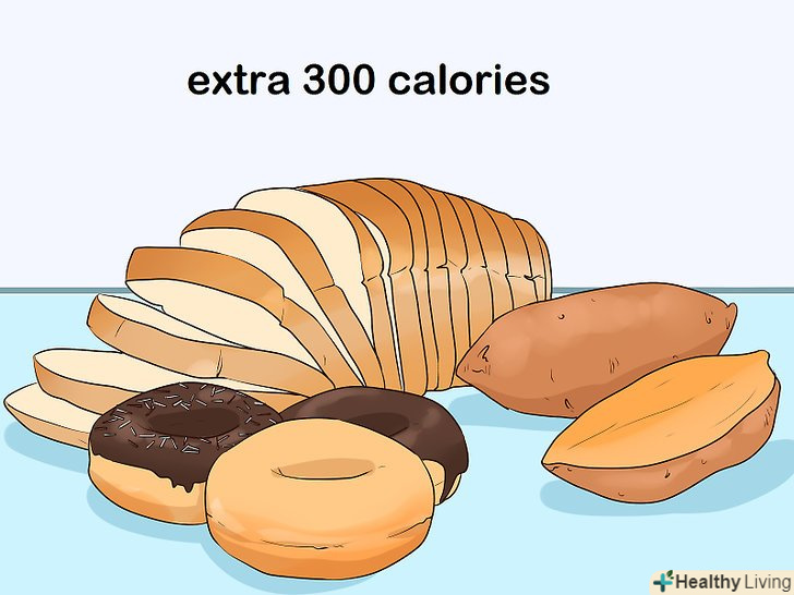 Розберіться в тому, скільки вам потрібно калорій.жінкам, які до вагітності мали нормальну вагу, необхідно в середньому 300 додаткових калорій в день під час другого і третього триместру.[4]- Жінки з нормальною вагою повинні споживати від 1900 до 2500 калорій на день.