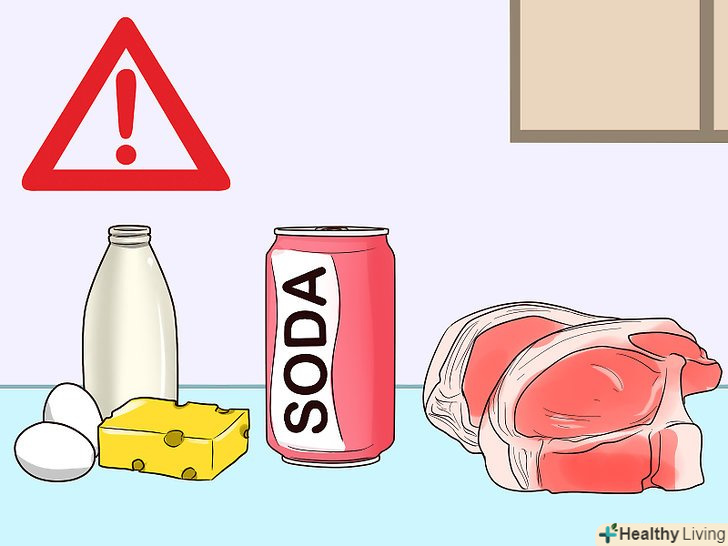 Уникайте споживання порожніх калорій і нездорової їжі.[5] порожні калорії приведуть до зайвого набору ваги, але не забезпечать вашої дитини необхідними поживними речовинами. Уникати споживання порожніх калорій дуже важливо для підтримки здорової ваги під час вагітності.- Уникайте продуктів з додаванням цукру і твердих жирів. Вони містяться у великій кількості в газованих напоях, десертах, таких жирних молочних продуктах як сир або незбиране молоко і в жирних шматках м'яса.
