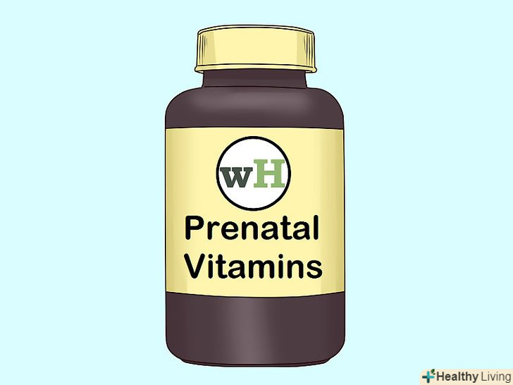 Підтримуйте здоровий раціон харчування, багатий вітамінами, необхідними для вагітних.особливу увагу приділіть продуктам, що містять фолієву кислоту, а також продуктам з достатнім вмістом білка, здорових жирів, вуглеводів і клітковини.[8]- Продукти, багаті вмістом фолієвої кислоти, включають в себе апельсиновий сік, полуницю, шпинат, брокколі, квасоля, а також хліб і крупи, збагачені фолієвою кислотою.