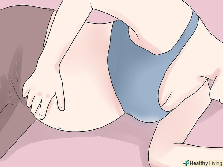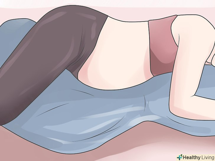 Розгляньте варіант використання подушки для вагітних.Подушки для вагітних служать підтримкою для живота, коли ви спите на боці. Вони також сприяють уповільненню процесу опухання колін і ножних литок, а також забезпечують підтримку під час сну попереку, захищаючи від хворобливих відчуттів і різкого болю в момент підйому.- Якщо у вас немає можливості придбати подушку для вагітних, затисніть між колінами під час сну на боці звичайну подушку.