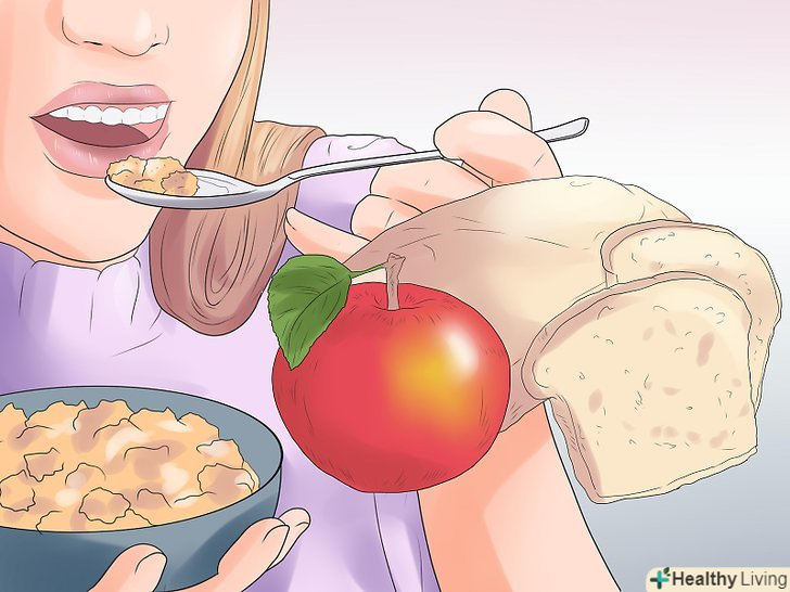 Подбайте про правильне харчування.те, чим ви харчуєтеся під час першого триместру, дуже важливо, оскільки закладає фундамент для всього процесу протікання вагітності. Постарайтеся їсти свіжу, корисну, повноцінну їжу, коли ви вагітні. Вибирайте їжу, багату клітковиною, це допомагає вам боротися з запорами.[3]- Порадьтеся з вашим лікарем або дієтологом, щоб розробити дієту, яка підходить до вашого нинішнього стану