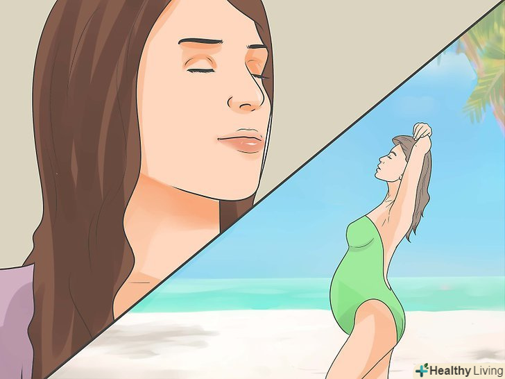 Техніки візуалізації. знайдіть який-небудь предмет або зображення і сконцентруйтеся на ньому, щоб розслабитися і не думати про біль під час пологів. Можете принести з собою улюблену фотографію і дивитися на неї під час сутичок. Виберете таке зображення, яке вас заспокоює. Наприклад, це може бути фотографія заходу сонця. Також можна просто закрити очі і уявити що-небудь приємне. Наприклад, можете уявляти, як ви сидите на пляжі або стоїте на вершині гори.[17]- Практика медитації допомагає розвинути навички візуалізації. Крім того, медитації ефективно допомагають боротися з болем при пологах. Запишіться на заняття з медитації перед пологами, щоб поліпшити своє вміння візуалізувати.[18]
