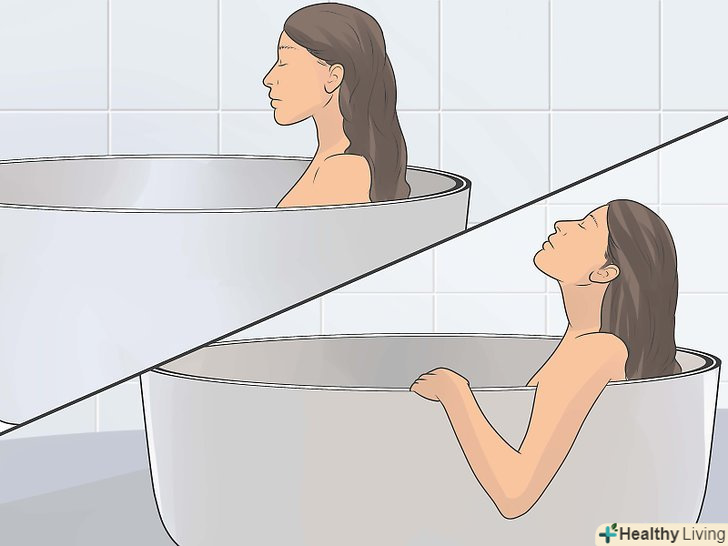 Якщо можливо, то прийміть ванну або душ.прийом ванни при пологах розслабляє м'язи і зменшує біль під час пологів. Душ теж може допомогти розслабитися. Якщо у вашому пологовому будинку можливо народжувати у воді, то можете розглянути і такий варіант природних пологів.[23]- Переконайтеся, що ванна має температуру тіла, тобто 37 °C.