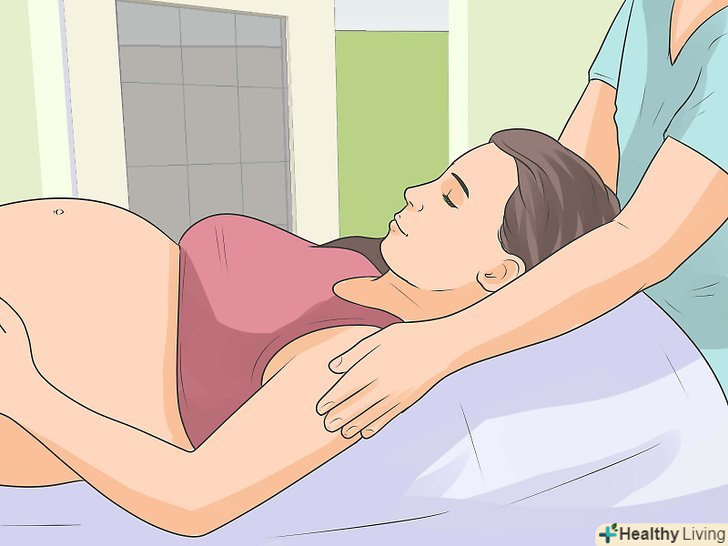 Масаж.масаж, зроблений досвідченою доулою або партнером по пологах, це відмінний спосіб розслабитися і відволіктися від болю. Втім, деякі жінки виявляють, що їм не подобається, коли до них доторкаються під час пологів, тому якщо це так, то не бійтеся повідомити про це.[21]