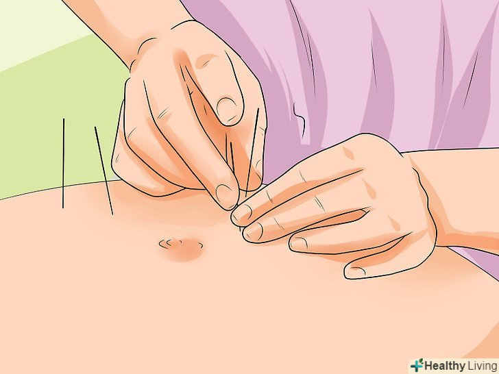 Використовуйте техніки акупунктури або акупресури.якщо у вас є така можливість, то можете використовувати техніки акупунктури або акупресури для боротьби з болем. При акупунктурі використовують найтонші голки, які вводять в конкретні точки на тілі-в деяких випадках це позбавляє від болю. Акупресура є аналогічною технікою, але при ній замість голок використовують точковий тиск. Якщо ви хочете використовувати дані методи полегшення болю, то краще заздалегідь домовитися про це з кваліфікованим фахівцем, а також з лікарями в пологовому будинку.[25]