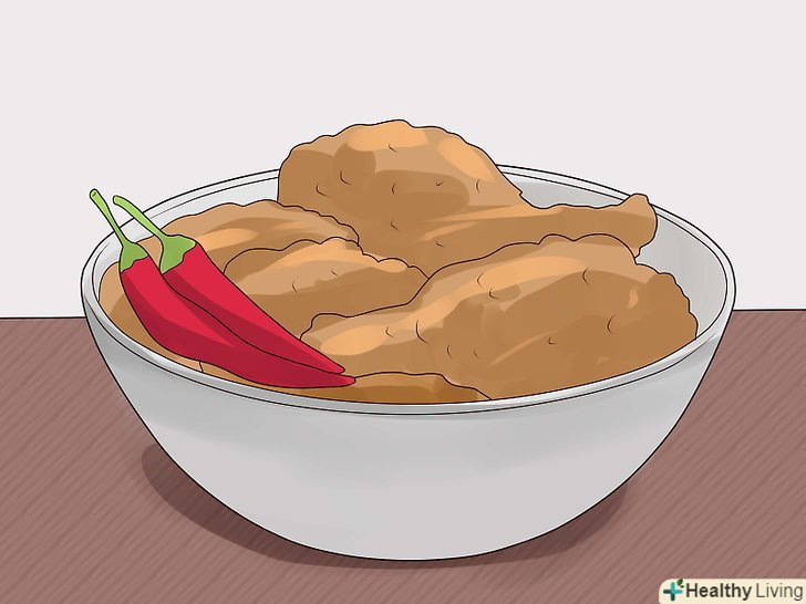Уникайте гострих і жирних продуктів, оскільки їх складніше перетравлювати.гостра і жирна їжа набагато частіше викликає діарею, оскільки її важко перетравлювати, і вона може дратувати шлунково-кишковий тракт.[3]- Не вживайте жирне м'ясо, наприклад, бекон і червоне м'ясо. Краще віддайте перевагу нежирним м'ясним протеїнам (індичка, куряча грудка без шкіри, біла риба). Крім того, не додавайте занадто багато рослинного і вершкового масла при приготуванні страв.