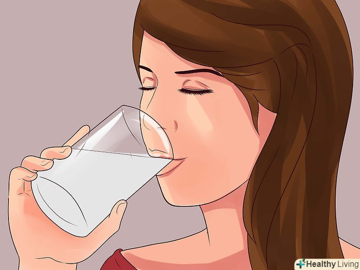 Пийте багато рідини.діарея часто призводить до зневоднення, оскільки ви втрачаєте багато рідини з випорожненнями. Тому потрібно пити багато води, щоб уникнути зневоднення. Випивайте мінімум 1,5 л води в день, а при можливості навіть більше.- Підтримувати водний баланс можна безліччю способів: смоктати кубики льоду, фруктовий лід на водній основі, пити багато трав'яних чаїв і їсти фрукти і овочі з високим вмістом рідини (кавун, огірок, помідори, буряк і виноград).
