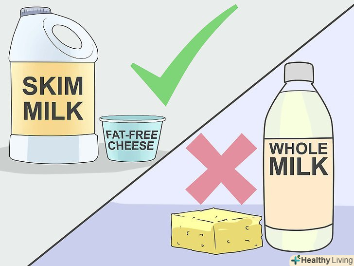 Купуйте здорові, менш жирні продукти, уникаючи спецій і звичайних приправ, щоб ваша вага не надто збільшувалася під час вагітності.- Перейдіть на однопроцентне молоко і низькокалорійний сир замість жирних молочних продуктів. Включайте молочні продукти по 3-4 порції в день.
