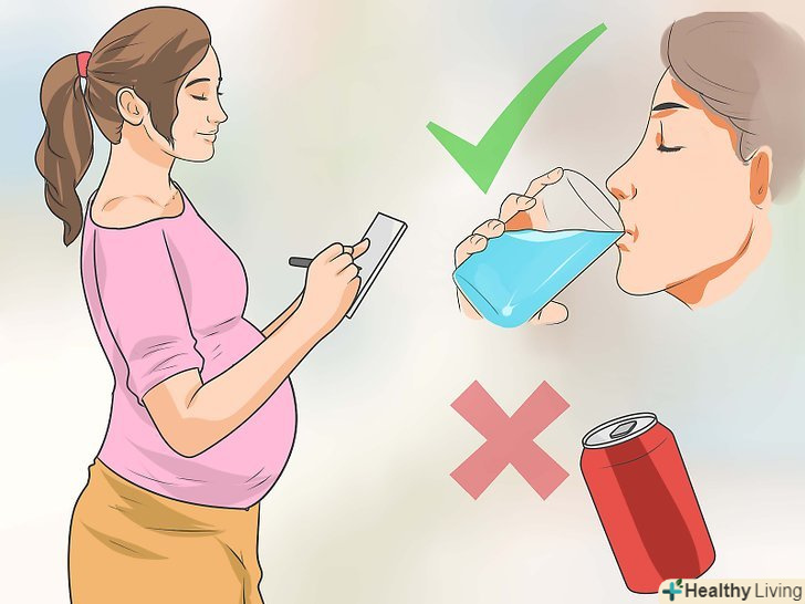 Виключіть зі свого раціону продукти, які містять «порожні» калорії. Записуйте те, що ви їсте. Завдяки цьому ви зможете виявити продукти, які містять «порожні» калорії (не мають поживної цінності). Визначивши ці продукти, виключіть їх зі свого раціону.- Наприклад, вибираючи напої, віддавайте перевагу тим, які не містять цукор, оскільки це може привести до збільшення ваги під час вагітності.