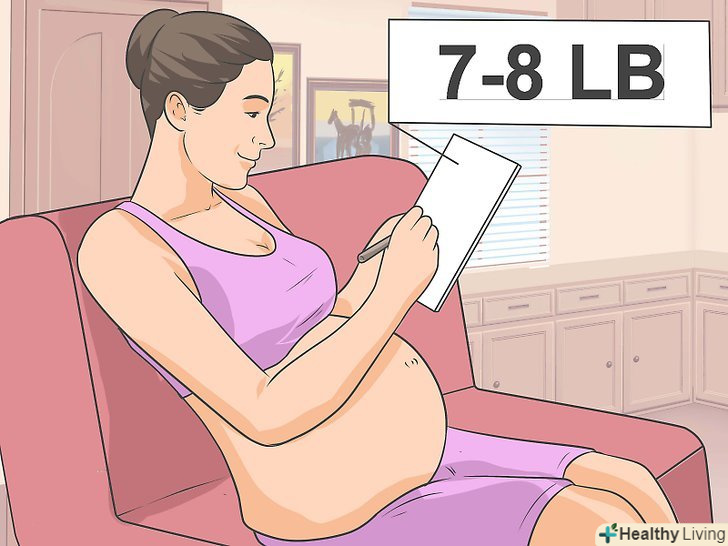 Зрозумійте важливість цього питання.правильний набір ваги не тільки важливий для здоров'я дитини, але також не менш важливий для вашого самопочуття. [5]- Хоча дуже важливо, щоб дитина отримувала достатню кількість поживних речовин, перебуваючи в утробі матері, занадто велика вага може завдати шкоди здоров'ю малюка. Негативні наслідки можуть виникнути пізніше в житті дитини, після його народження. Надмірна маса тіла при народженні збільшує ймовірність ожиріння у дітей. Крім того, збільшується ризик розвитку діабету.[6]