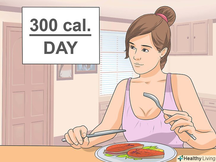 Попросіть вашого лікаря порахувати, скільки калорій необхідно вживати для нормального збільшення ваги під час вагітності.як правило, лікарі рекомендують збільшити раціон на 300 калорій. [11]- Крім того, дотримуйтеся правильного співвідношення поживних речовин. Дієтологи рекомендують дотримуватися таких пропорцій: 20% білка, 30% жиру і 50% вуглеводів.[12]