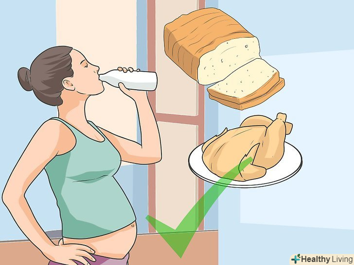 Правильно вибирайте продукти.якщо ви хочете набрати додаткову вагу, що вкрай необхідно для розвитку і зростання плоду, дуже важливо включати в свій раціон продукти, які мають високу поживну цінність. [14]- Зовсім нескладно набрати вагу, вживаючи фаст-фуд або подібну їжу з порожніми калоріями, але ваша мета полягає в тому, щоб забезпечити дитину поживними речовинами, необхідними для його росту і розвитку. Як згадувалося вище, дотримуйтеся наступного співвідношення: 20% білка, 30% жиру і 50% вуглеводів. Включайте в свій раціон продукти, багаті поживними речовинами.