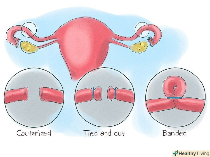 Жіноча стерилізація.операція проводиться з метою перекрити маткові труби в процесі, який називається перев'язка матковий труб, який запобігає можливість вагітності. Цей метод дуже ефективний у запобіганні вагітності, але його не слід приймати необдумано, оскільки він незворотній.