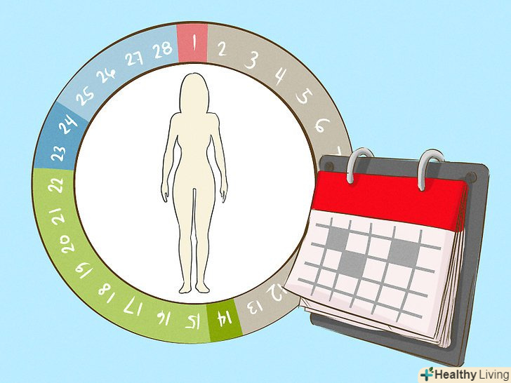 Рахуйте дні менструального циклу.якщо у вас регулярний менструальний цикл, то ви з найбільшою ймовірністю можете визначити, коли яйцеклітина в наступний раз буде проходити через фаллопієві труби. Якщо ваш цикл триває 28 днів, то овуляція швидше за все настає на 12-14 день. Хороший спосіб обчислити овуляцію-відрахувати назад 16 днів від передбачуваного дня початку вашої наступної менструації. Овуляція повинна відбутися в цей день або протягом 5 днів після цього дня.[13]- Сьогодні в інтернеті можна знайти безліч онлайн-калькуляторів для обчислення овуляції. Наприклад, скористайтеся цим.