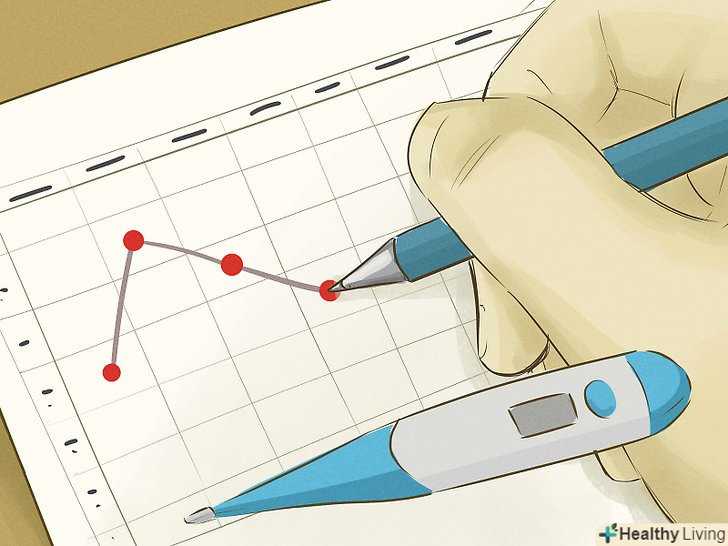 Вимірюйте базальну температуру.базальна температура (найнижча температура тіла в будь-який 24-годинний відрізок) піднімається на 0,11 ºC через кілька днів після овуляції. Ви можете використовувати точні термометри, які вимірюють температуру з точністю до 1/10-ої градуса.[14] на звичайному термометрі складно помітити настільки малі відхилення. Сьогодні в багатьох аптеках можна придбати спеціальний термометр для вимірювання базальної температури.[15]