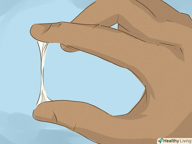 Зверніть увагу на цервікальний слиз. Відстежуйте її колір і консистенцію. У міру наближення овуляції, ви побачите збільшення кількості прозорих, що тягнуться виділень. Якщо ви можете розтягнути між пальцями невелику кількість виділень, тоді, швидше за все, у вас овуляція. Такі зміни непросто виявити, тому відстежуйте їх уважно.[16]