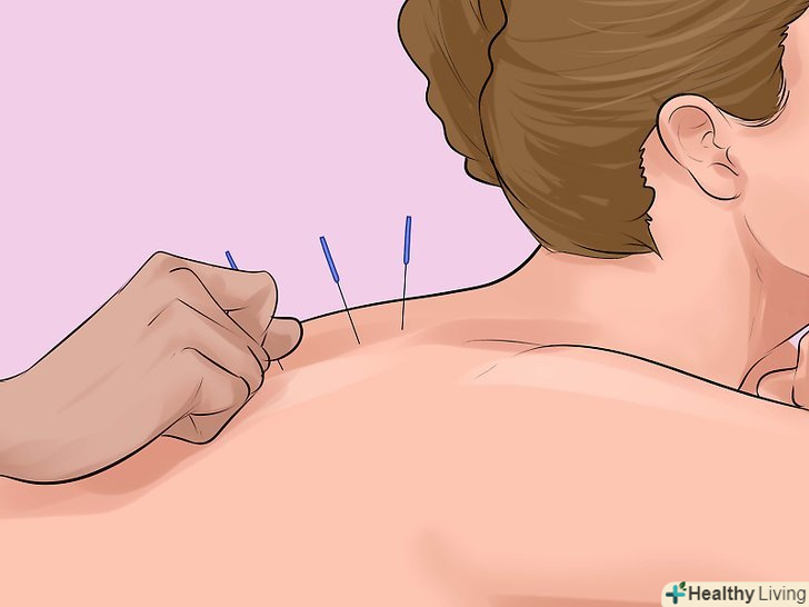 Спробуйте акупунктуру . [21] знайдіть сертифікованого фахівця в області акупунктури, який має досвід роботи з вагітними жінками. Як показали дослідження, голковколювання допомагає зменшити біль в поперек у вагітних жінок.[22]- Ви можете попросити у друзів або інших лікарів порекомендувати вам хорошого голкотерапевта. Уточніть у лікаря, де і на яких курсах він навчався голковколювання, який курс лікування він порекомендував би вам, а також, якщо це може бути застосовано, чи буде покритий даний курс лікування страховкою. Вибирайте того фахівця, який вам приємний, в кабінеті якого ви відчуваєте себе комфортно.[23][24]