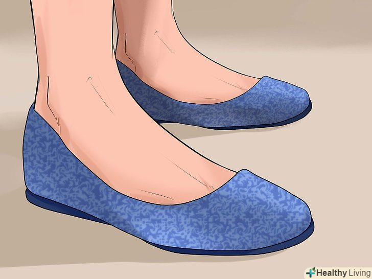 Носіть взуття на плоскій підошві з хорошим супінатором. [29] вибирайте взуття розумно, тоді вам буде зручніше ходити, не перенапружуючи при цьому спину. Дослідження показали, що під час 20 і 32 тижні вагітності відбувається зрушення, при якому весь тиск перерозподіляється по стопі.[30] саме тому важливо звернутися до ортопеда, щоб він оцінив, чи буде супінатор для підтримки зводу стопи корисним для вас.- Не носіть взуття на високих підборах, а також взуття, яка не підтримує звід стопи і щиколотку (наприклад, в'єтнамки або балетки). Задня частина взуття повинна бути твердою і вертикальною. Шнурівка також може дати достатню підтримку.[31]