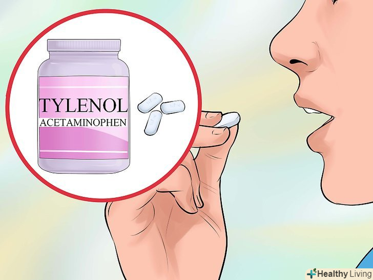 Скористайтеся болезаспокійливими засобами.ви повинні обов'язково проконсультуватися з лікарем щодо того, які ліки будуть безпечні для вас. Парацетамол (ацетамінофен), як правило, безпечний при вагітності, тоді як нестероїдні протизапальні засоби (НПЗЗ), включаючи Ібупрофен та напраксен, не є безпечними.[18]