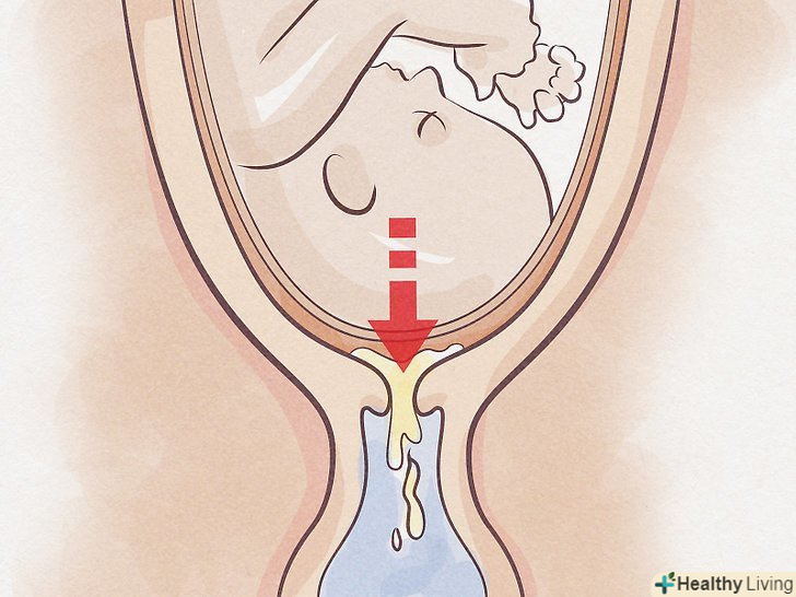 Вивчіть симптоми відходження вод.як уже згадувалося, води можуть відійти природним чином на початку родової діяльності. Багато хто очікує, що це обов'язково повинно супроводжуватися великим потоком рідини, але у всіх все відбувається по-різному. Води можуть відійти в повному обсязі, можливо, ви просто відчуєте вологу в піхву, або у вас почнуться часті підтікання невеликої кількості рідини з піхви.[10]