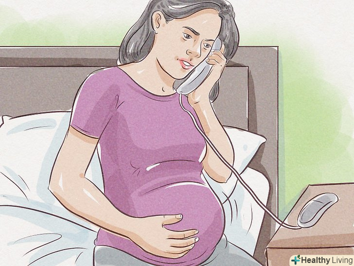 Викличте швидку допомогу, щоб відправитися в пологовий будинок, або акушерку для пологів на дому.де б ви не вирішили народжувати, вам слід повідомити медиків про те, що у вас відійшли води. Швидше за все, вам зададуть ряд додаткових питань і дадуть ряд вказівок.[12]- Якщо ви не впевнені в тому, відійшли у вас пологи, краще зателефонувати медикам і пояснити свою ситуацію.