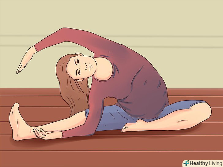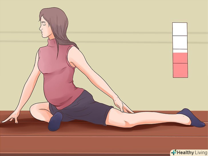 Зі збільшенням терміну вагітності знижуйте інтенсивність фізичних вправ.ближче до кінця вагітності ви можете відчути задишку, що може привести до фізіологічного стресу. Щоб уникнути цього не робіть вправи, що вимагають зусиль, на останній термінах вагітності.- Припиніть тренування негайно, якщо відчуєте затримку дихання, запаморочення, нудоту, дзвін у вухах, біль будь-якого типу, більш ніж чотири позиви до сечовипускання за годину, зниження ембріональної діяльності (ворушінь) або вагінальна кровотеча. Негайно зверніться до свого лікаря.