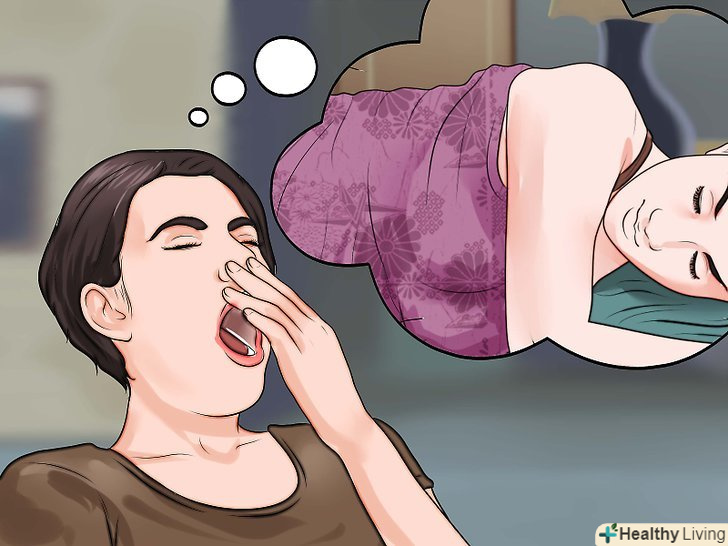 Боріться з стомлюваністю.більшість жінок відчувають сильну втому під час першого триместру, і це абсолютно нормально. Ця втома може проявлятися навіть до збільшення живота і появи додаткової ваги. У вашому організмі відбувається багато фізичних і гормональних перебудов, і на це потрібно багато енергії. Щоб впоратися з стомлюваністю в першому триместрі, спробуйте слідувати порадам, які ми наводимо нижче:[13]- Налагодьте сон і дотримуйтеся режиму. Якщо організм говорить вам, що вам варто лягти спати раніше, прислухайтеся до нього. Відмовтеся від необов'язкових справ і попросіть кого-небудь допомагати вам з домашніми справами.