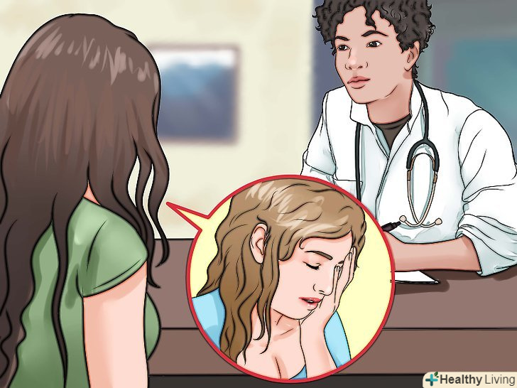 Поговоріть з лікарем про депресію.діагностувати порушення в емоційному тлі у вагітних може бути складно, оскільки вагітність викликає багато схожих симптомів, включаючи втому, зміни апетиту, проблеми зі сном. Однак вчені встановили, що близько 33% жінок стикаються з клінічною депресією або тривожним розладом під час депресії і тільки 20% звертаються за допомогою.[16] якщо ігнорувати симптоми і не звертатися за лікуванням, ви будете наражати на небезпеку як себе, так і дитину. Зверніться до лікаря, щоб той запропонував вам варіанти лікування. Існують наступні методи боротьби з порушеннями настрою:- Психотерапія, наприклад, когнітивно-поведінкова. Психотерапевт навчить вас інакше сприймати свої думки і емоції.