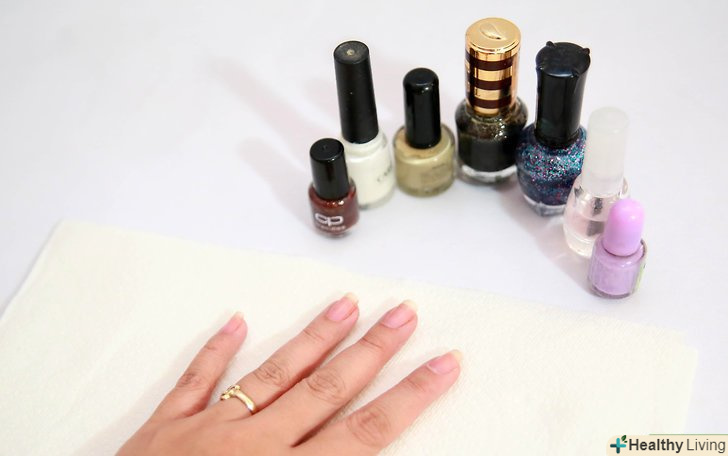 Не користуйтеся токсичним лаком для нігтів.Лаки для нігтів можуть містити хімічні речовини, такі як толуол, формальдегід і дибутилфталат, які дуже шкідливі і можуть викликати проблеми з нервами, гормонами або навіть рак.- Прочитайте етикетку і знайдіть лак на водній основі без цих трьох хімічних речовин. Ці лаки для нігтів нетоксичні і легко знімаються спиртом.