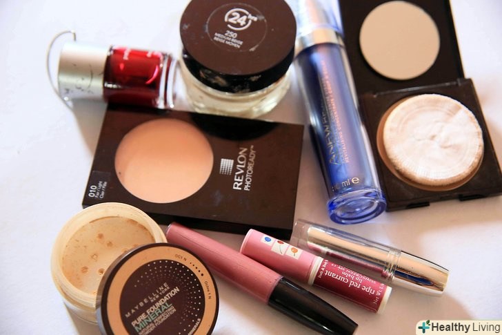Читайте етикетки на всіх засобах особистої гігієни. ви не повинні робити ніяких припущень, що бренд, який випускає нетоксичні засоби особистої гігієни, робить тільки нетоксичні продукти, тому що різні продукти вимагають різних типів інгредієнтів.[5]- Етикетки на всіх продуктах особистої гігієни слід читати і порівнювати зі списком відомих токсичних інгредієнтів, яких потрібно уникати. Варто вивчати ярлики на сонцезахисних кремах, бальзамах для губ, лосьйонах для рук, косметиці та жіночих серветках і т. д.