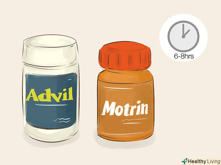 Приймайте ібупрофен кожні 6-8 годин, якщо лікар порекомендує вам цей препарат.через 2-4 дні після аборту у вас можуть з'явитися помірні спазми в нижній частині живота. Нестероїдні протизапальні препарати, які відпускаються без рецепта, включаючи ібупрофен ("Нурофен", "Ібуклін"), знімуть біль і спазми. Запитайте у лікаря, чи можна вам приймати препарати цієї категорії. Приймайте болезаспокійливі раз в 6-8 годин.[10]- Ібупрофен підходить не всім. Якщо ви не можете його приймати, спробуйте знімати біль парацетамолом ("Еффералган").