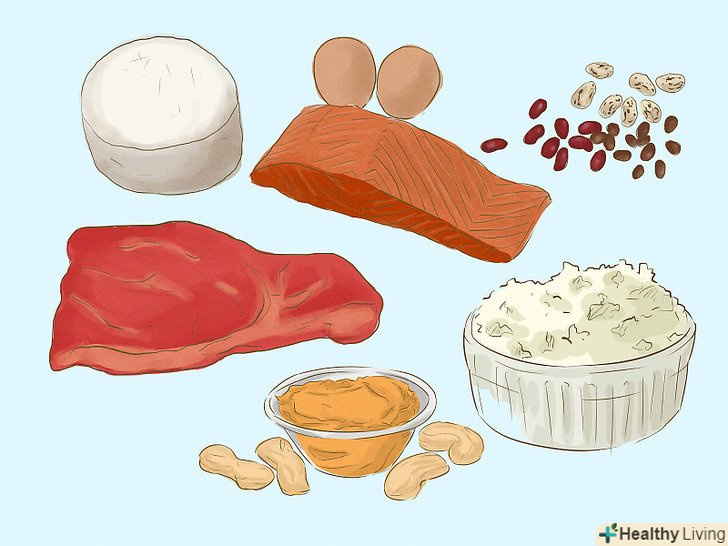 Вживайте більше білка.білки завжди мають велике значення, але коли ви вагітні, прагнете з'їдати 2-3 порції білка в день. Білок, перш за все, відповідає за вироблення крові і клітинний ріст як для вас, так і вашого плоду.[11]- Відмінними джерелами здорового білка є яйця, грецький йогурт, бобові (квасоля), тофу, арахісове масло і нежирне м'ясо.