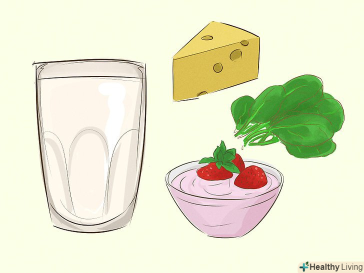 Вживайте достатню кількість кальцію.кальцій життєво важливий для здоров'я вагітної, і багато хто з них не отримують його в потрібній кількості. Хоча зазвичай у вітамінах для вагітних міститься деяка кількість кальцію, вам потрібно намагатися додатково вживати 1000 мг кальцію щодня. Вживаючи більше кальцію, ви будете сприяти розвитку кісткової і нервової системи плода.- Хорошими джерелами кальцію є йогурт, тверді сири, молоко і шпинат.