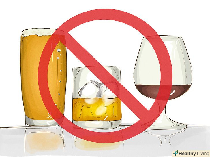 Не вживайте алкоголь.алкоголь категорично заборонений вагітним жінкам, оскільки його вживання тягне за собою цілий спектр вроджених вад розвитку і ускладнень. Вживання алкоголю істотно підвищує ризик викиднів або мертвонародження, збільшує ймовірність того, що згодом у дитини виявляться відхилення в розвитку, і веде до плодового алкогольного синдрому. Повністю відмовтеся від алкоголю на час вагітності, щоб уникнути цих ризиків, а при необхідності, якщо ви відчуваєте алкогольну залежність, зверніться до фахівця або психолога.[18]- Якщо ви вживали алкоголь, ще не знаючи про свою вагітність, не переживайте — чим швидше ви відмовитеся від цієї шкідливої звички, тим менш імовірно, що ви зіткнетеся з вищеописаними ускладненнями.